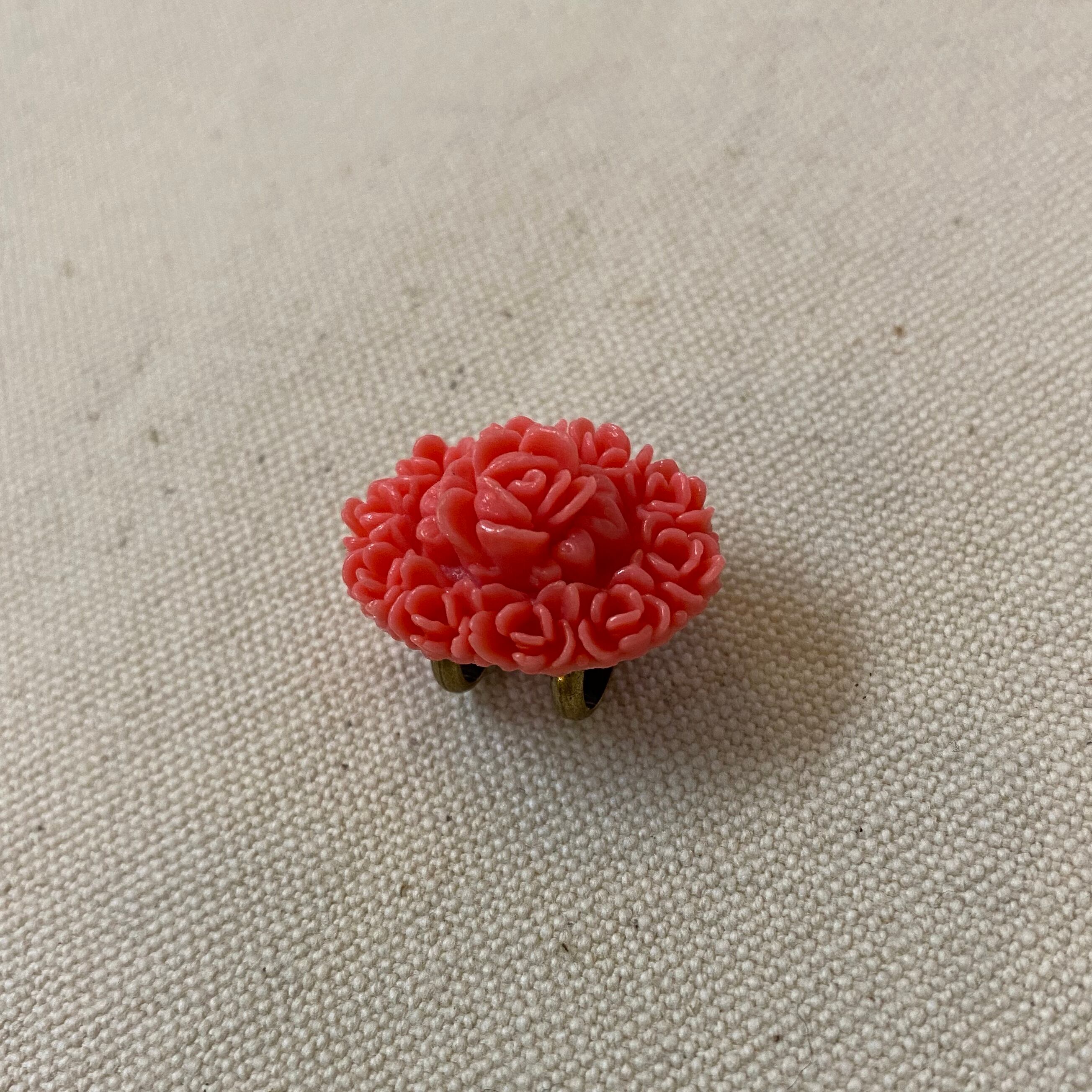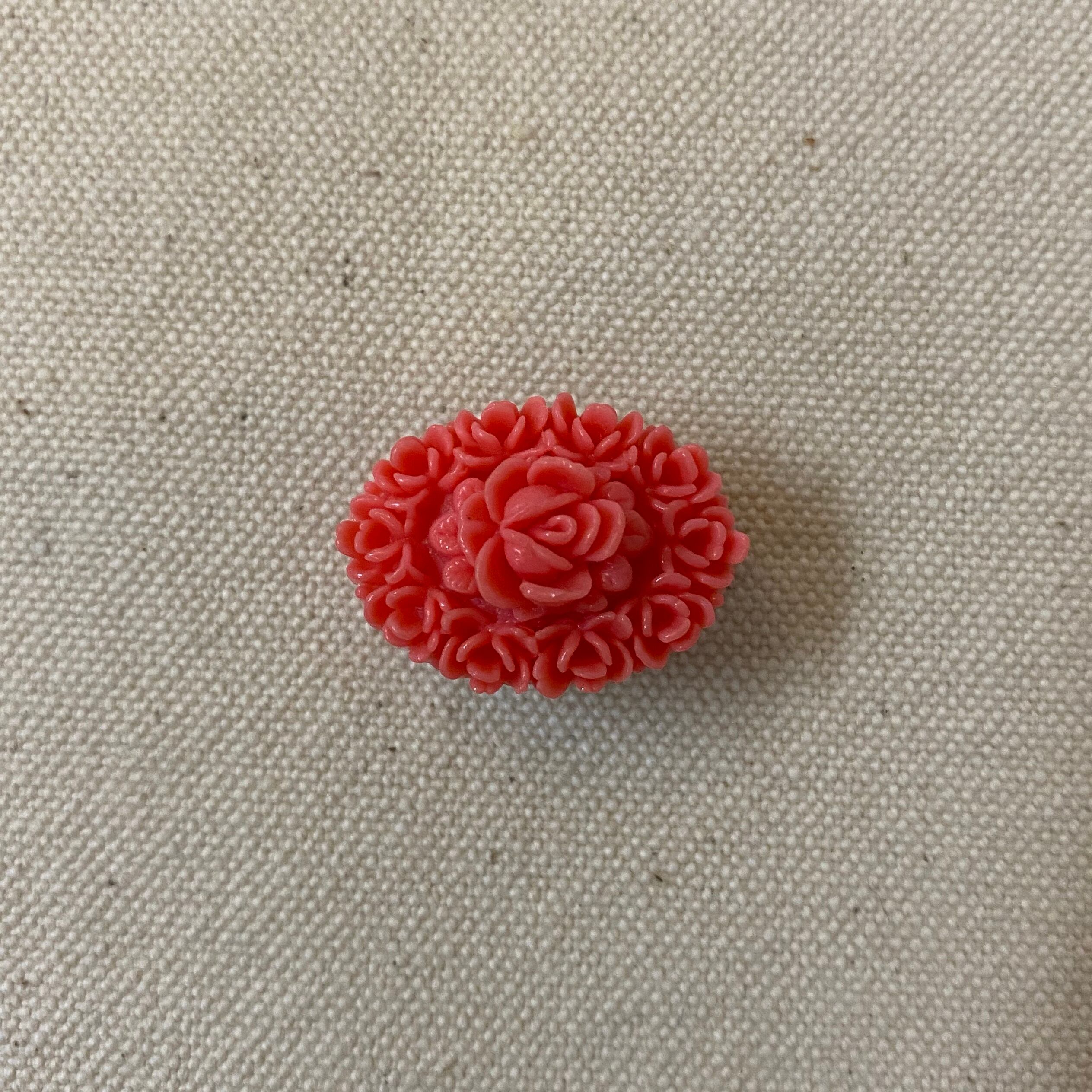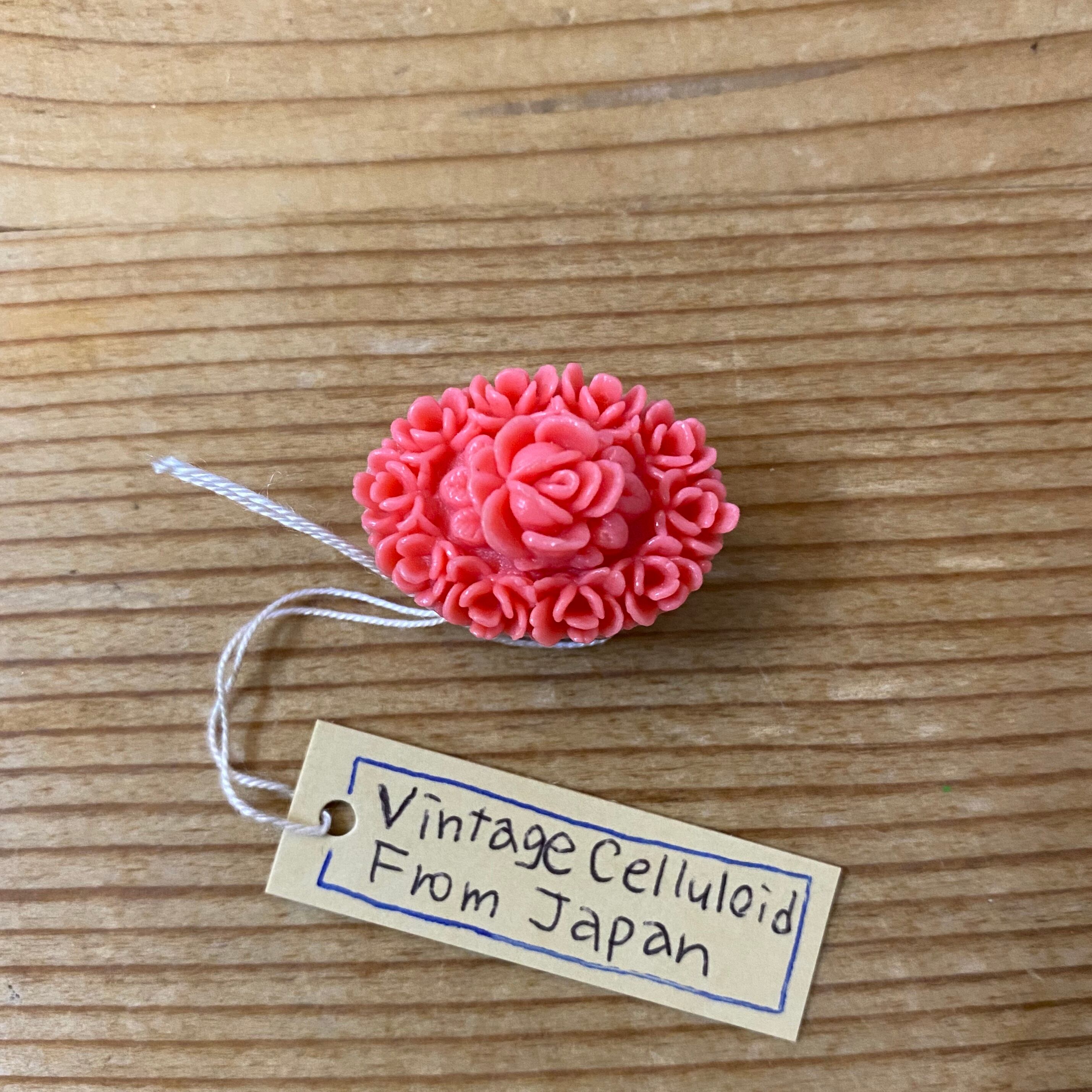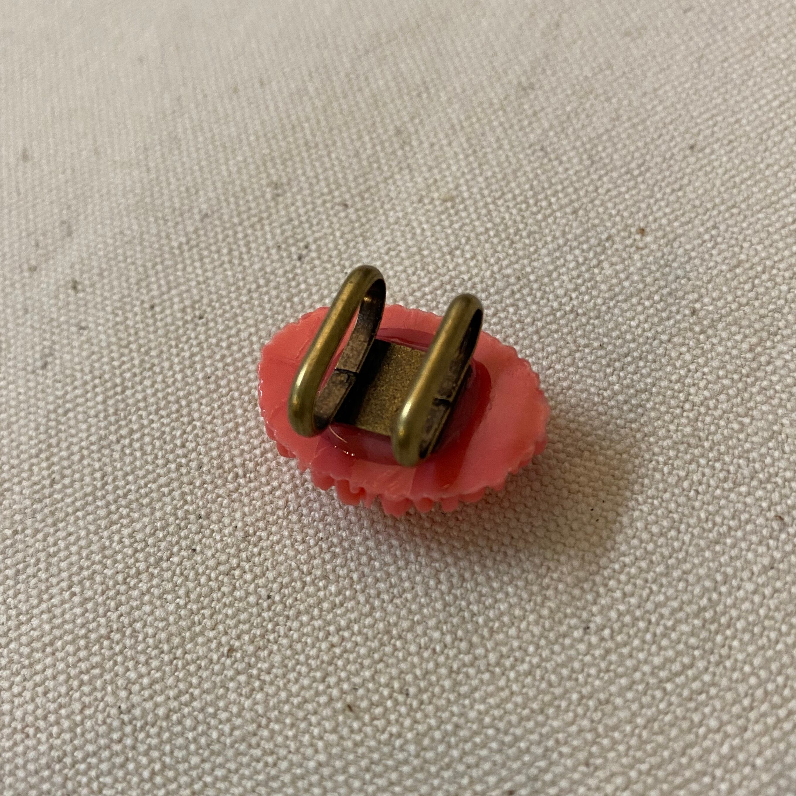 【再販】珊瑚色の小さく花咲くジャパンヴィンテージセルロイドの帯留め
