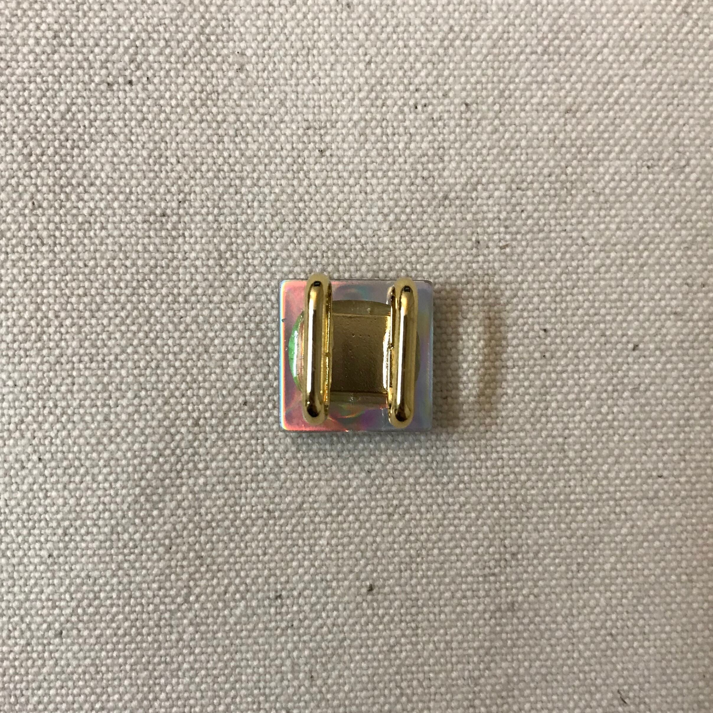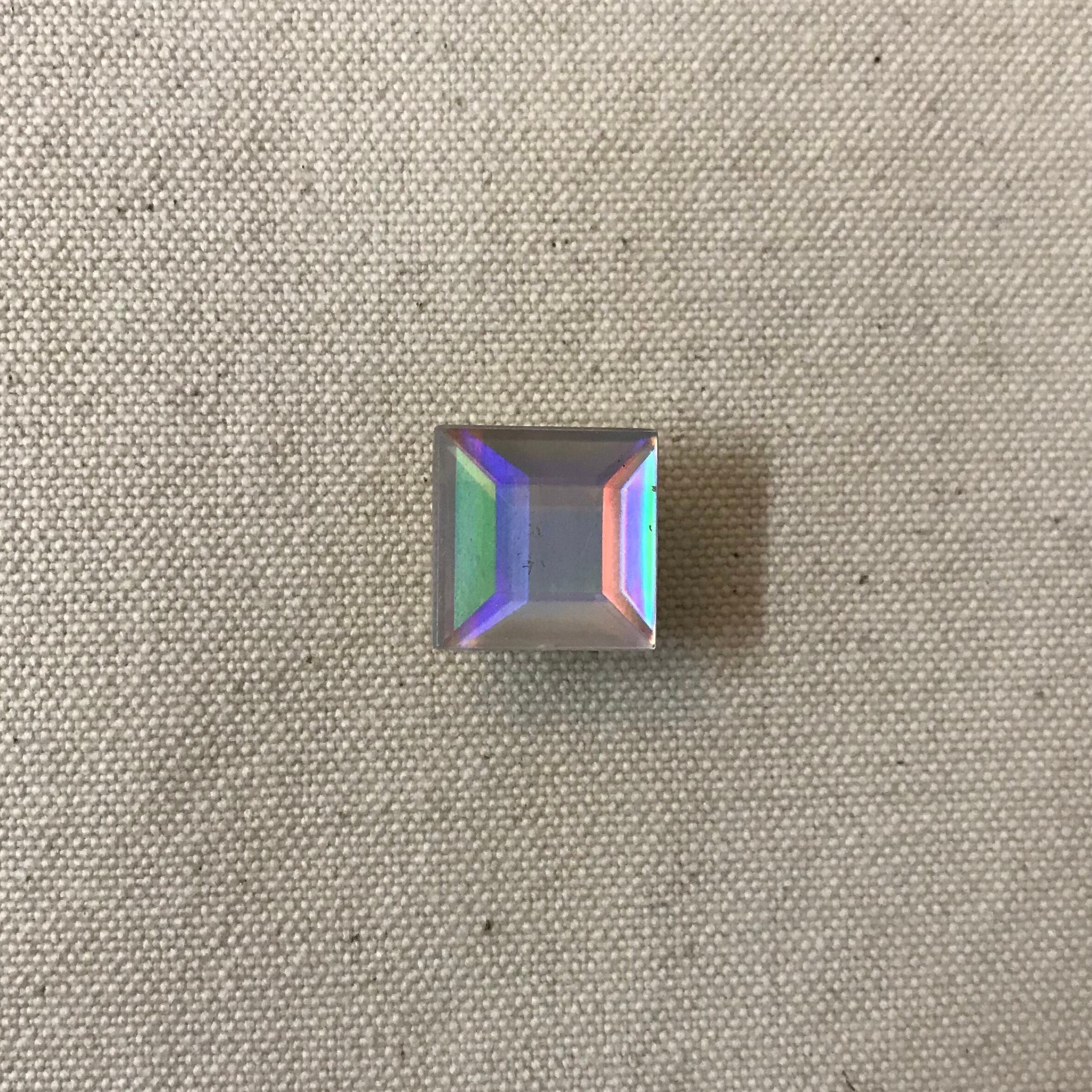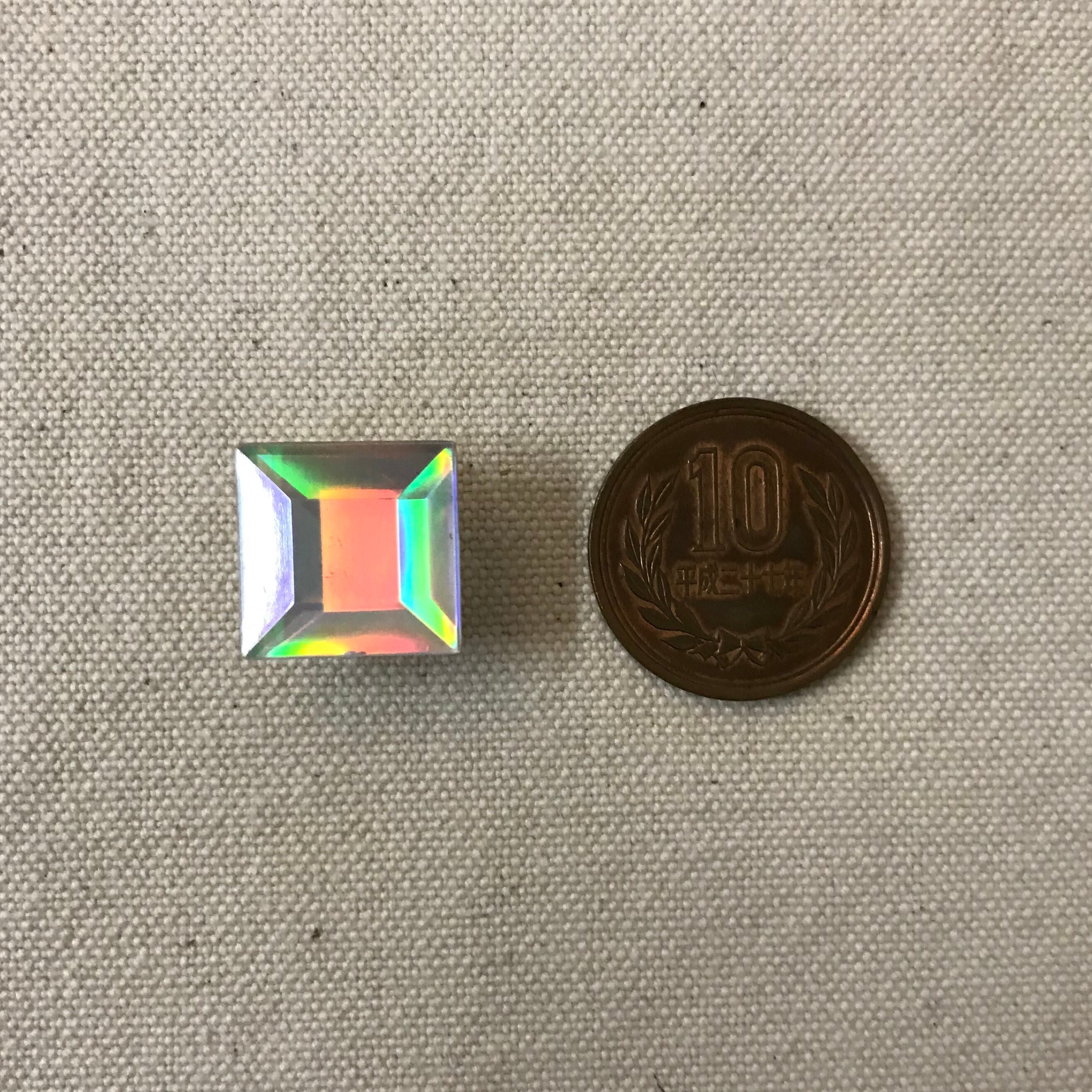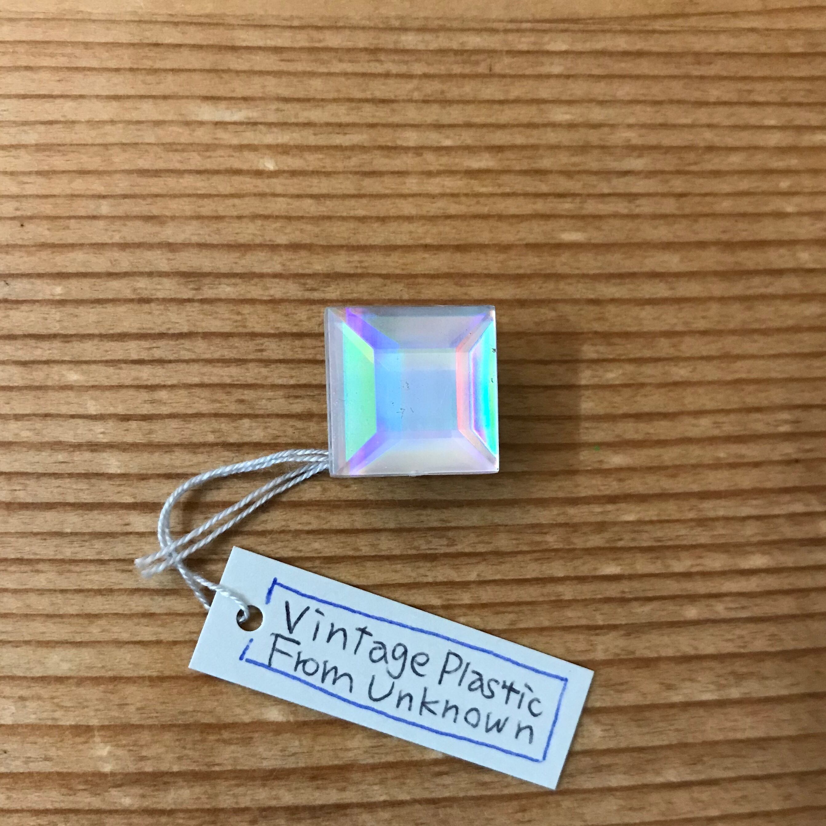 子どもの頃のおもちゃ箱から出てきたような、キッチュなヴィンテージオーロラスクエアカボションの帯留めです。