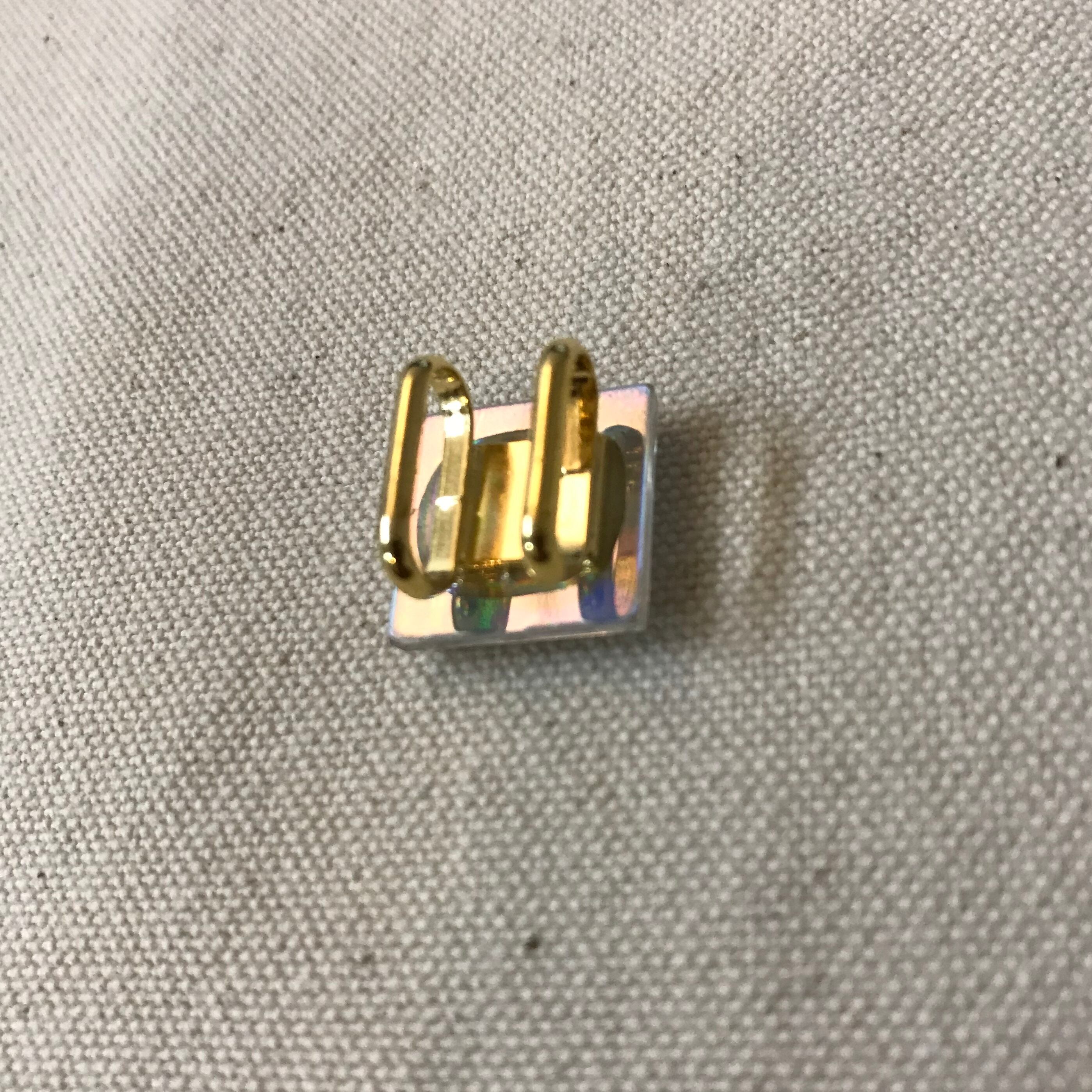 ホログラムのようなオーロラ色のちょこっと小さな帯留めです。小さい頃大切にしていた、おもちゃの宝石のような、そんなかわいらしさがあります。