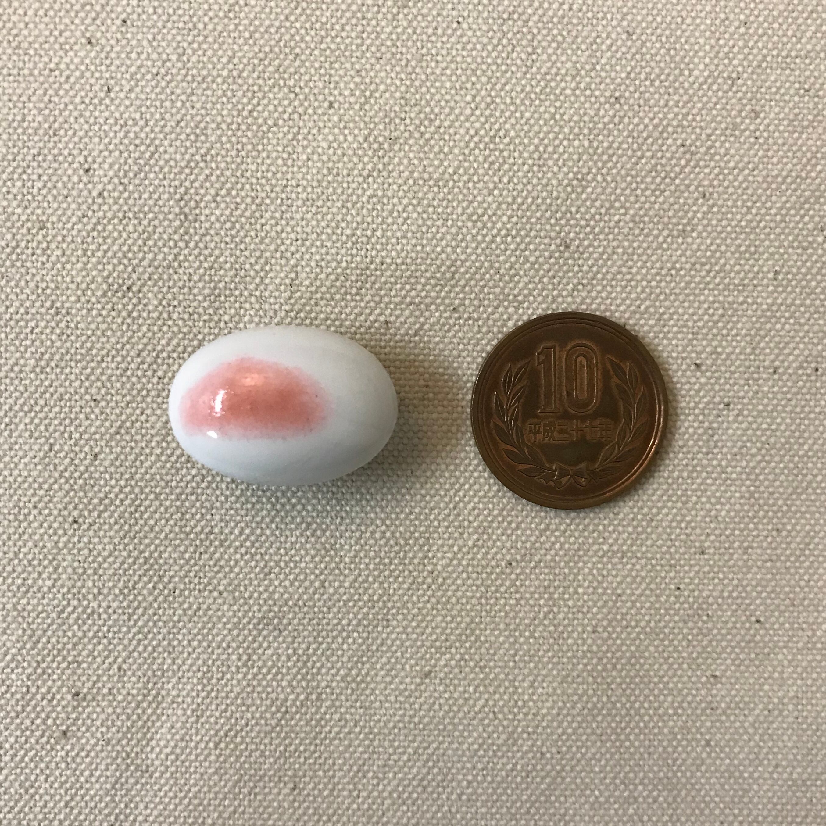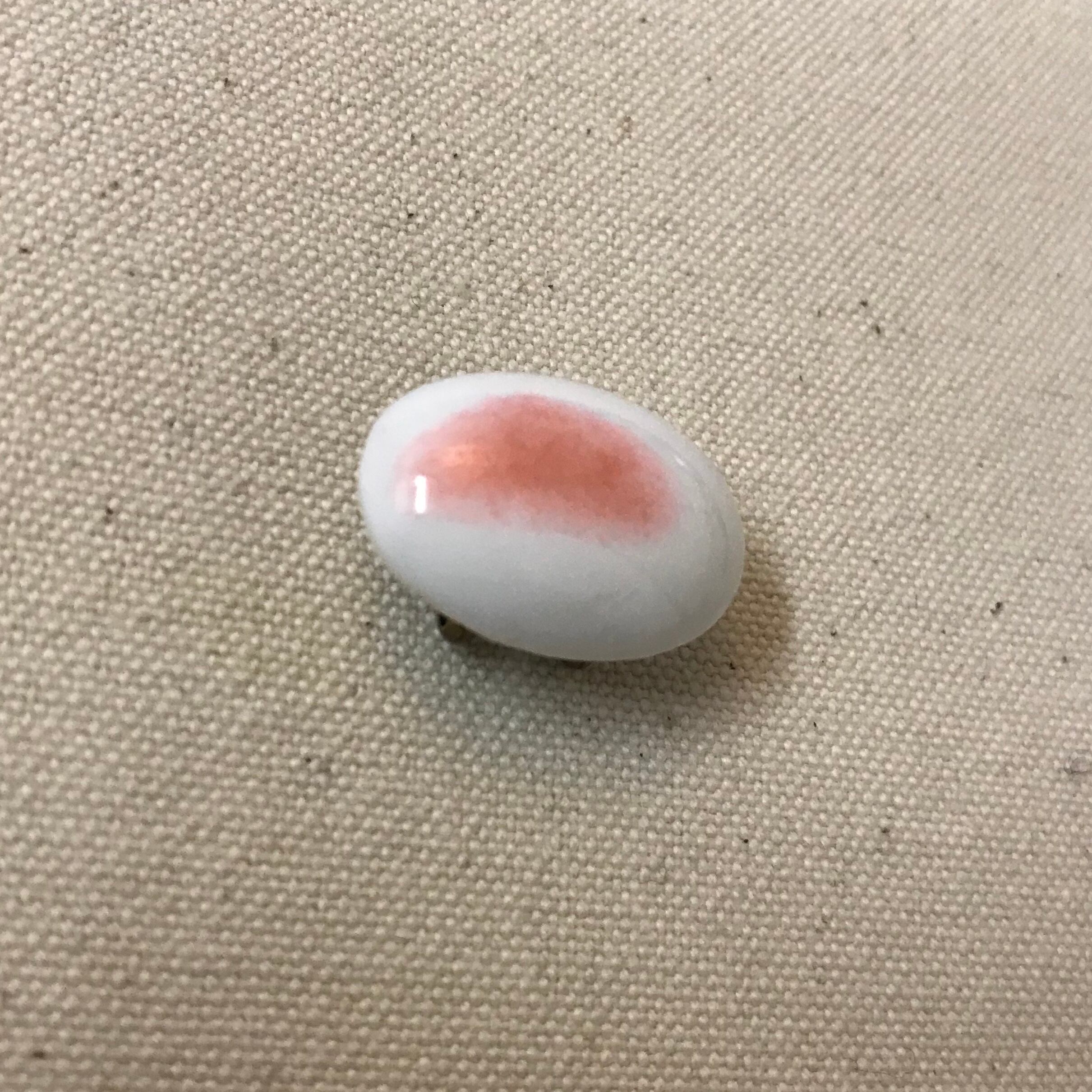 白地に桃色がのった素朴な雰囲気のガラスのカボションはドイツ製ヴィンテージながらも、どことなく古き良き日本を思わせます。