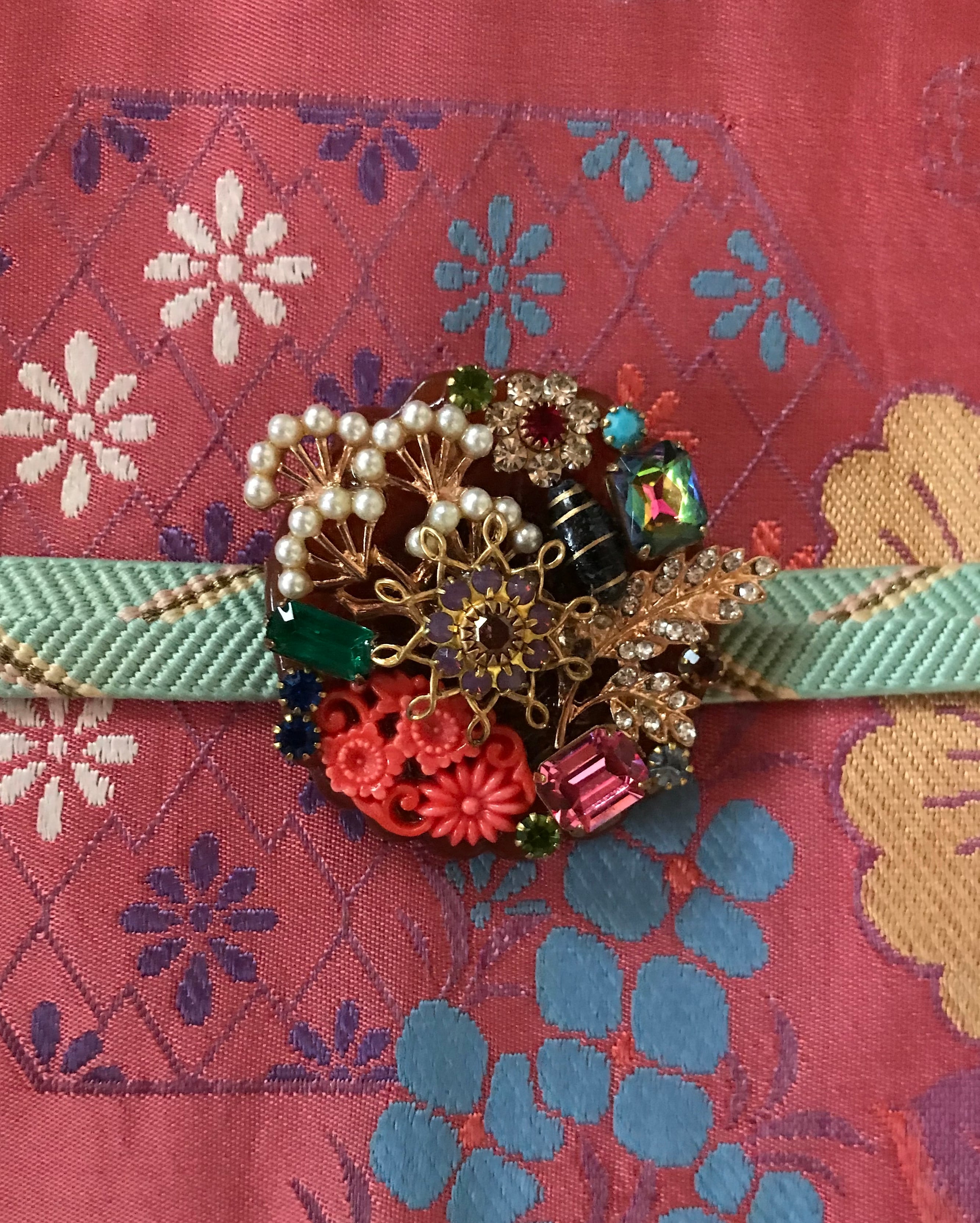 振袖や花嫁さんにも 舞妓さんのぽっちりのようなきらきら輝くヴィンテージパーツいっぱいの帯留め
